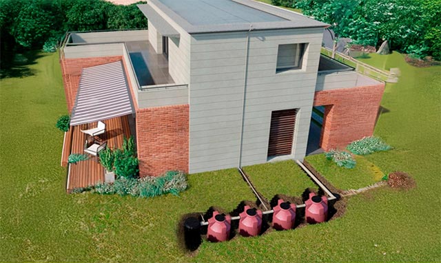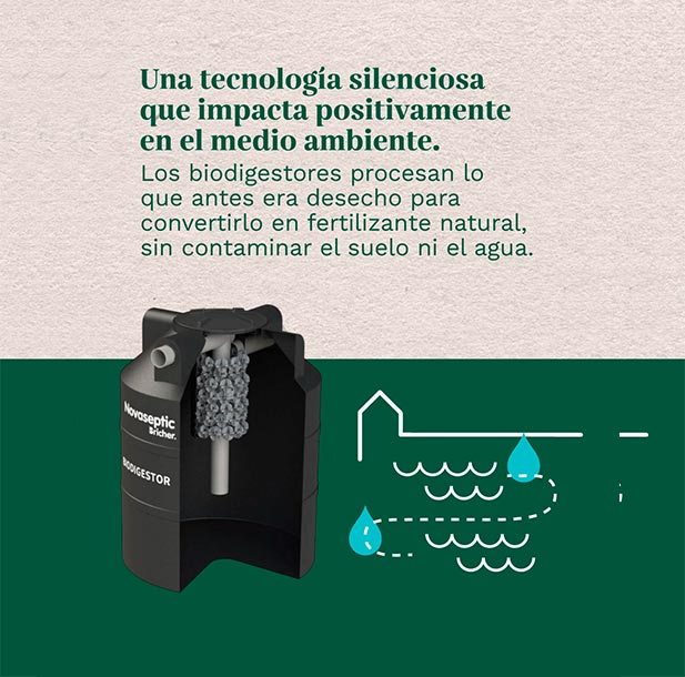 Tecnología limpia que cuida el entorno. En lugar de cloacas o pozos negros, proponemos la utilización de biodigestores que procesan los residuos orgánicos y los transforman en fertilizante natural, sin olores, sin riesgo para el agua y sin contaminar el suelo. Es un sistema silencioso, eficiente y pensado para convivir en armonía con la naturaleza.